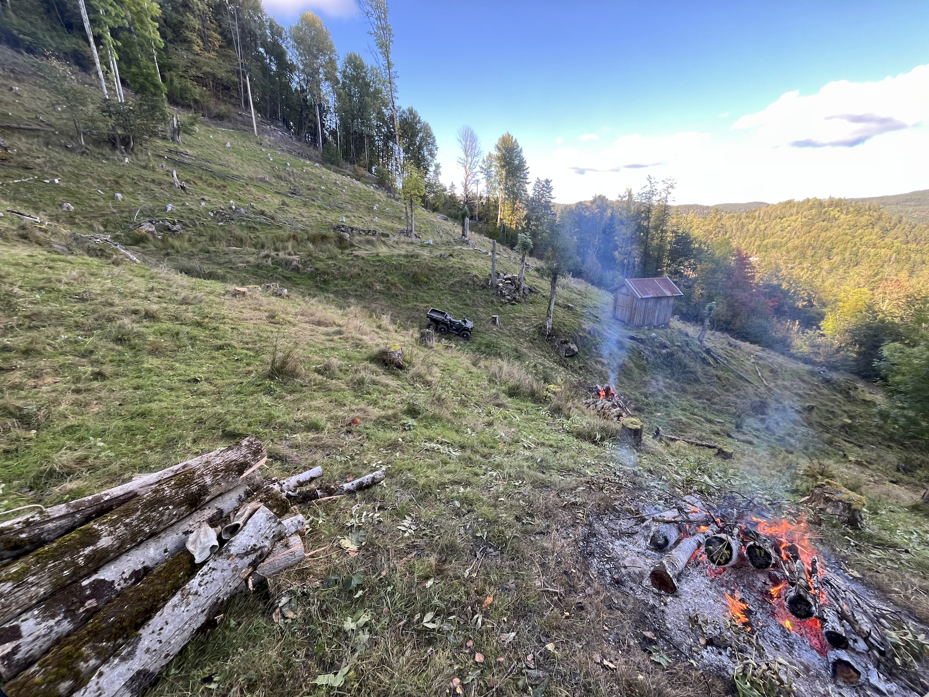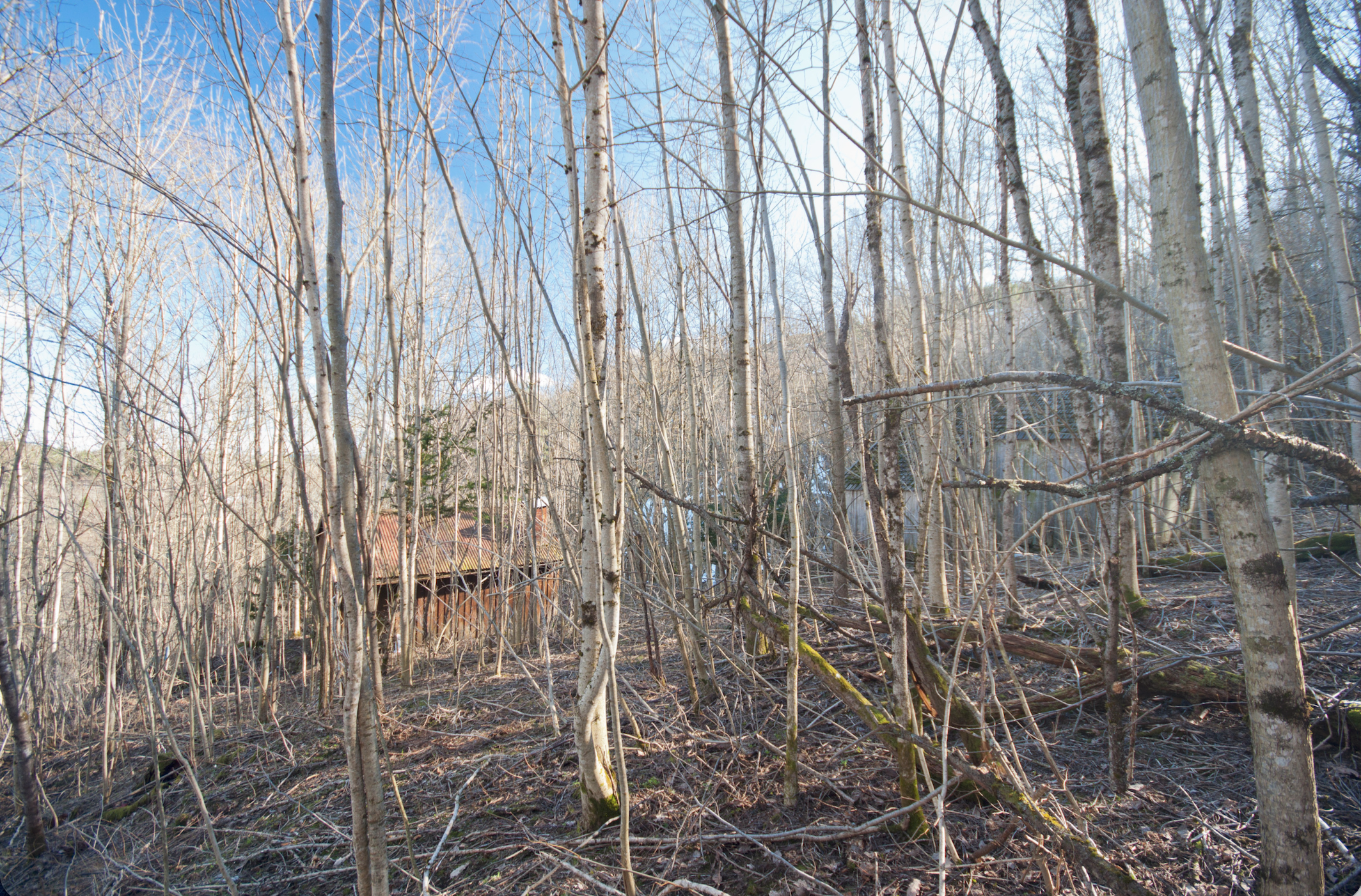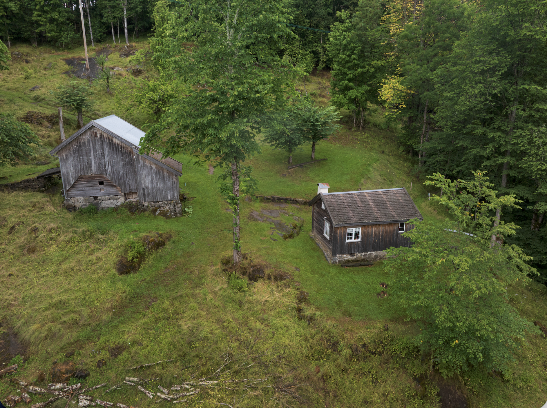 Melaaslia was cleared around 1799. In the 19th century, the farmhouse of 24 square meters housed 8 people, while the barn of 35 square meters housed a cow and some sheep, an outhouse and room for storing hay and tools. The property had access to 3.5 hectares of land on a steep hillside with a height difference of 112 meters, which was eventually cleared by the crofter. Additionally, in order to be allowed to farm the land, the crofter had to participate in the harvest and herding for the farmer, as well as other tasks Melaaslia was bought from the farmer in 1908 and was occupied with very limited upgrading until 1985. For 30 years the property was in disrepair and the landscape unmaintained. The current owners took over the property in 2014.